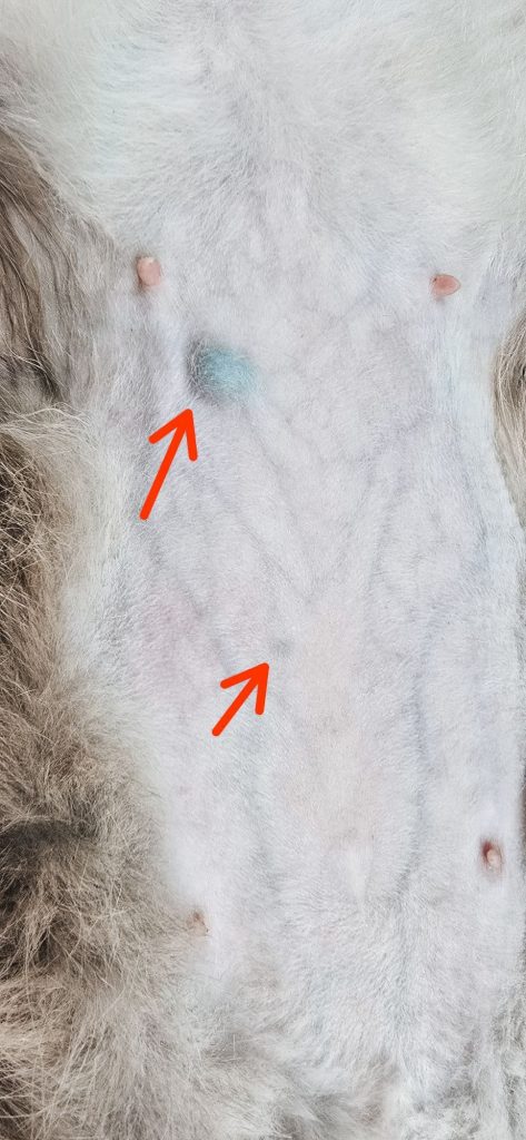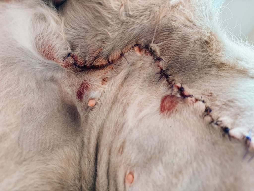 En esterilitzar-la, els veterinaris van detectar nòduls sospitosos que, després de la biòpsia, van resultar ser malignes. La setmana passada va ser sotmesa a una operació complexa amb l’ajut d’un oncòleg veterinari: se li va haver d’extreure tota la cadena mamària d’un costat.