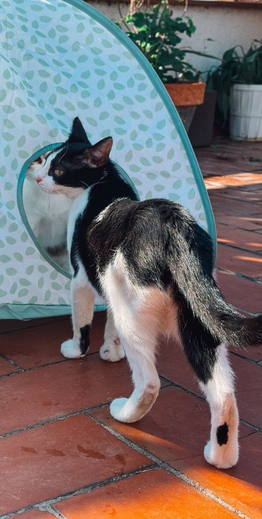 La seva història és commovedora… La vam rescatar del carrer Montserrat, on vivia envoltada de brutícia, intentant sobreviure amb diverses camades de cadells. Els seus dos petits actuals encara no tenien els ulls oberts quan els vam trobar. 😔