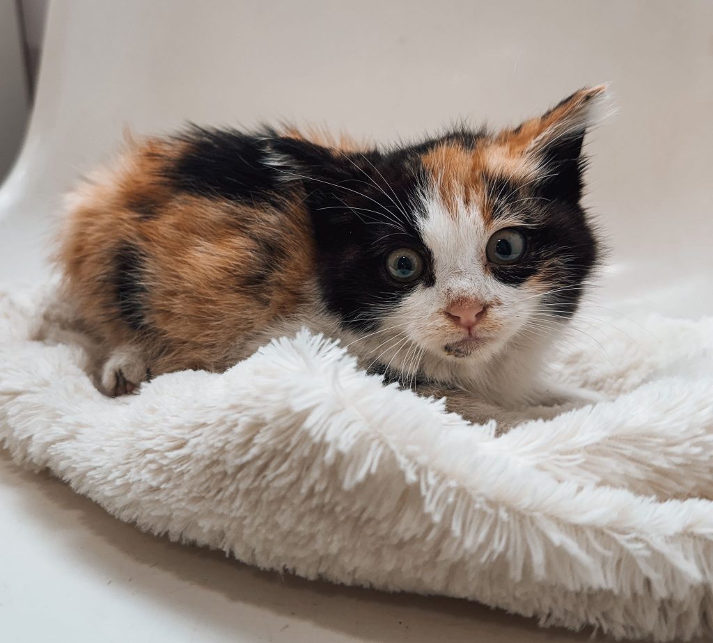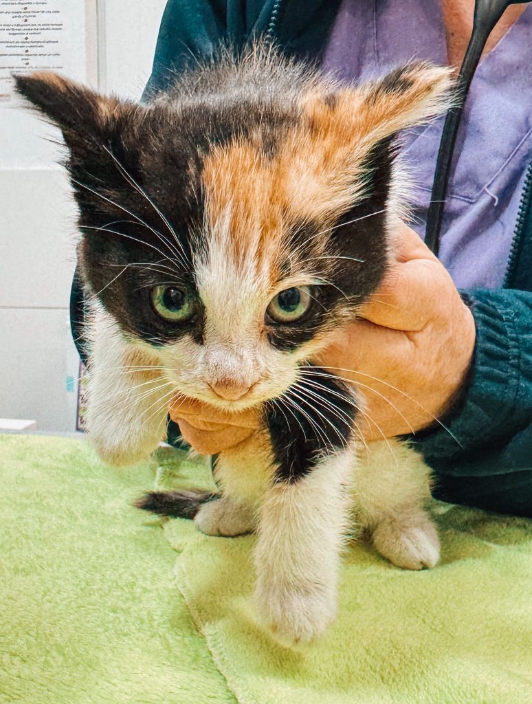 Després de la revisió veterinària i de ser testada, sabem que està refredada, però per sort el seu estat general és bo.
