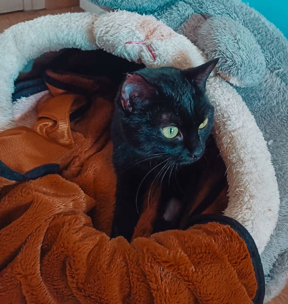 Gràcies a la solidaritat i el bon cor de l’Anna i la seva parella, li fan de casa d’acollida on està atesa un cop l’hem esterilitzat.
