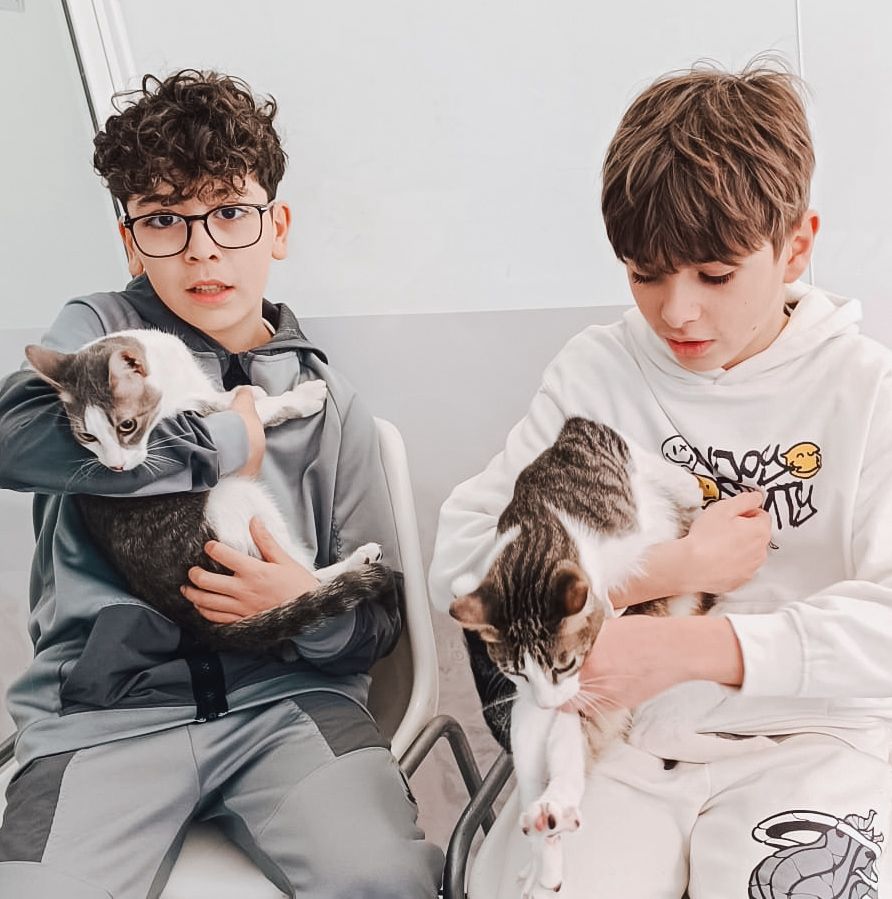 I avui, aquell parell de petits tan vulnerables són dos gats molt afortunats. Milo i Romeo comencen una nova etapa, envoltats d’amor. Hem trobat per ells una família fantàstica. La Tamara i el seu fill els han obert la porta de casa seva… però sobretot els han obert el cor.