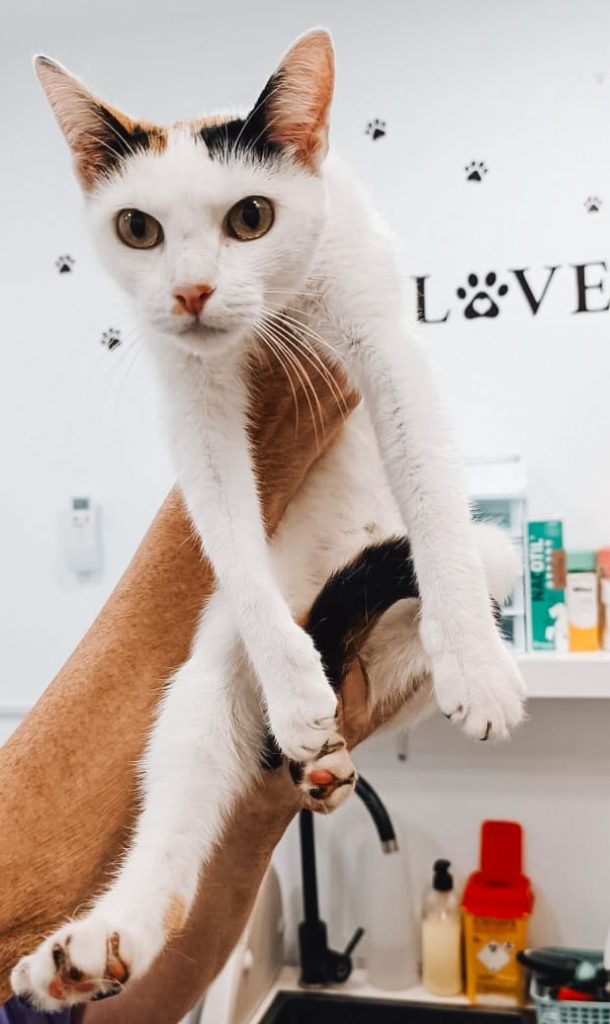 Un cop al veterinari hem descobert que la gata porta microxip: té tres anys, està esterilitzada i és extremadament afectuosa. Però aquí arriba el xoc… Contacten amb la seva tutora i resulta que diu que la va donar, ni recorda a qui, i que la gata va quedar coixa perquè li va caure del balcó quan vivia amb ella.