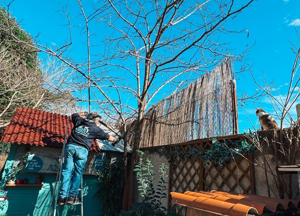 Els dies de vent i pluges ens han obligat a fer millores urgents a la casa de la colònia del Passadís, ja que hi entrava aigua. Hem instal·lat una teulada nova perquè els nostres amics felins estiguin protegits i segurs.